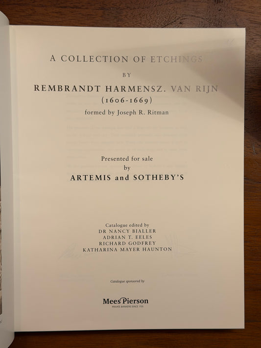A COLLECTION OF ETCHINGS BY REMBRANDT HARMENSZ. VAN RIJN ( 1606-1669) formed by Joseph R. Ritman Presented for sale by ARTEMIS and SOTHEBY'S