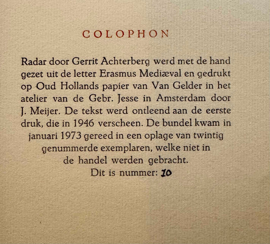 Gerrit Achterberg, Radar, Amsterdam 1973