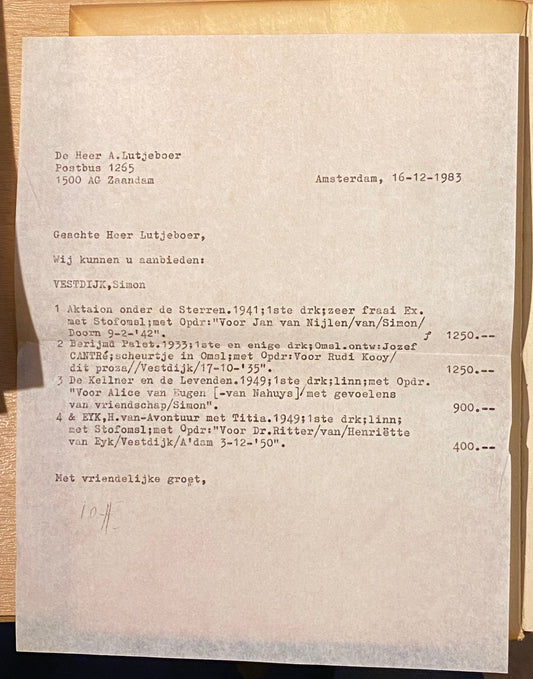 Simon Vestdijk, Vrouwendienst. Verzen. Rotterdam, Nijgh en Van Ditmar, 1934