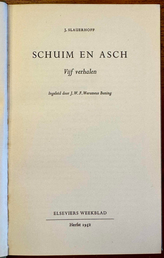 J. Slauerhoff, Schuim en asch. Vijf verhalen ingeleid door J.W.F. Werumeus Buning. Elzeviers Weekblad, herfst 1953