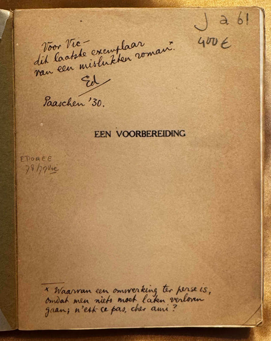 E. du Perron, Een voorbereiding (omgewerkte druk). met een tekening van A.C. Willink. Brussel & Maastricht, A.A.M. Stols, 1931