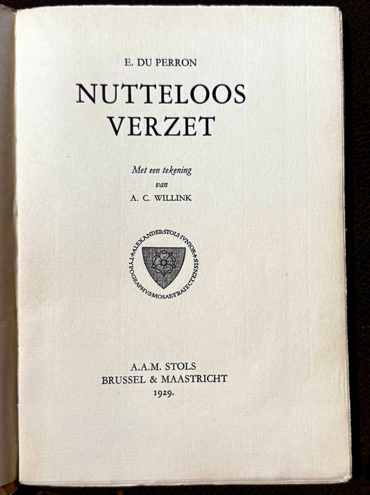 E. du Perron. Nutteloos verzet. Met een tekening van A.C. Willink. Brussel & Maastricht, 1929.