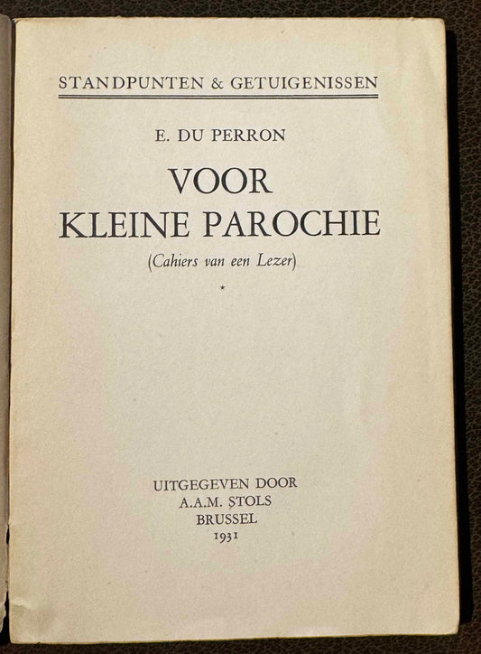 E. du Perron, Voor kleine parochie (Cahiers van een lezer). Brussel, A.A.M. Stols, 1931