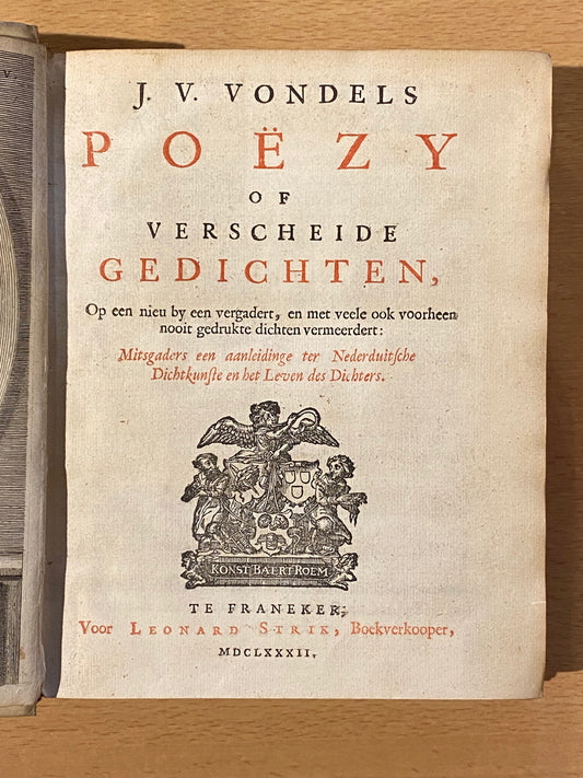 J. V. Vondel, Poëzy of Verscheide gedichten. Franeker, Leonard Strik, 1682