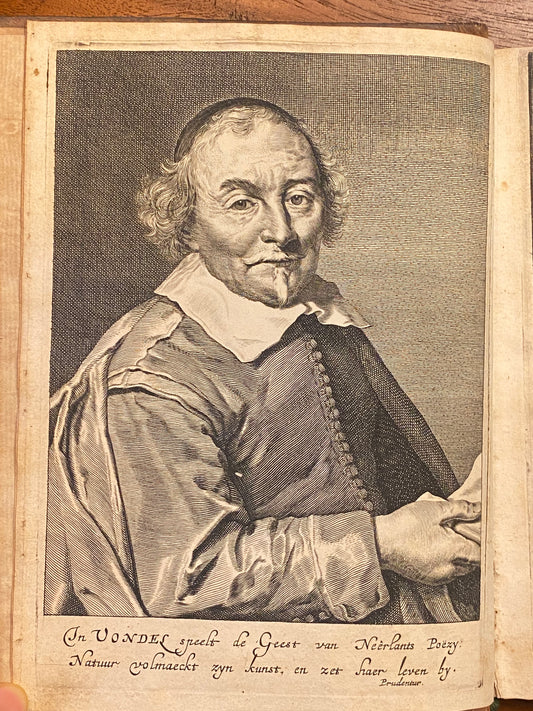 J. V. Vondel, 1. Joannes de boetgezant, 2. Koning Davids Harpzangen, 3. Brieven der heilige maegden, martelaressen, 4. De vaderen, 5. De heerlyckheit der kercke. Amsterdam, By de weduwe van Gysbert de Groot, 1696-1723