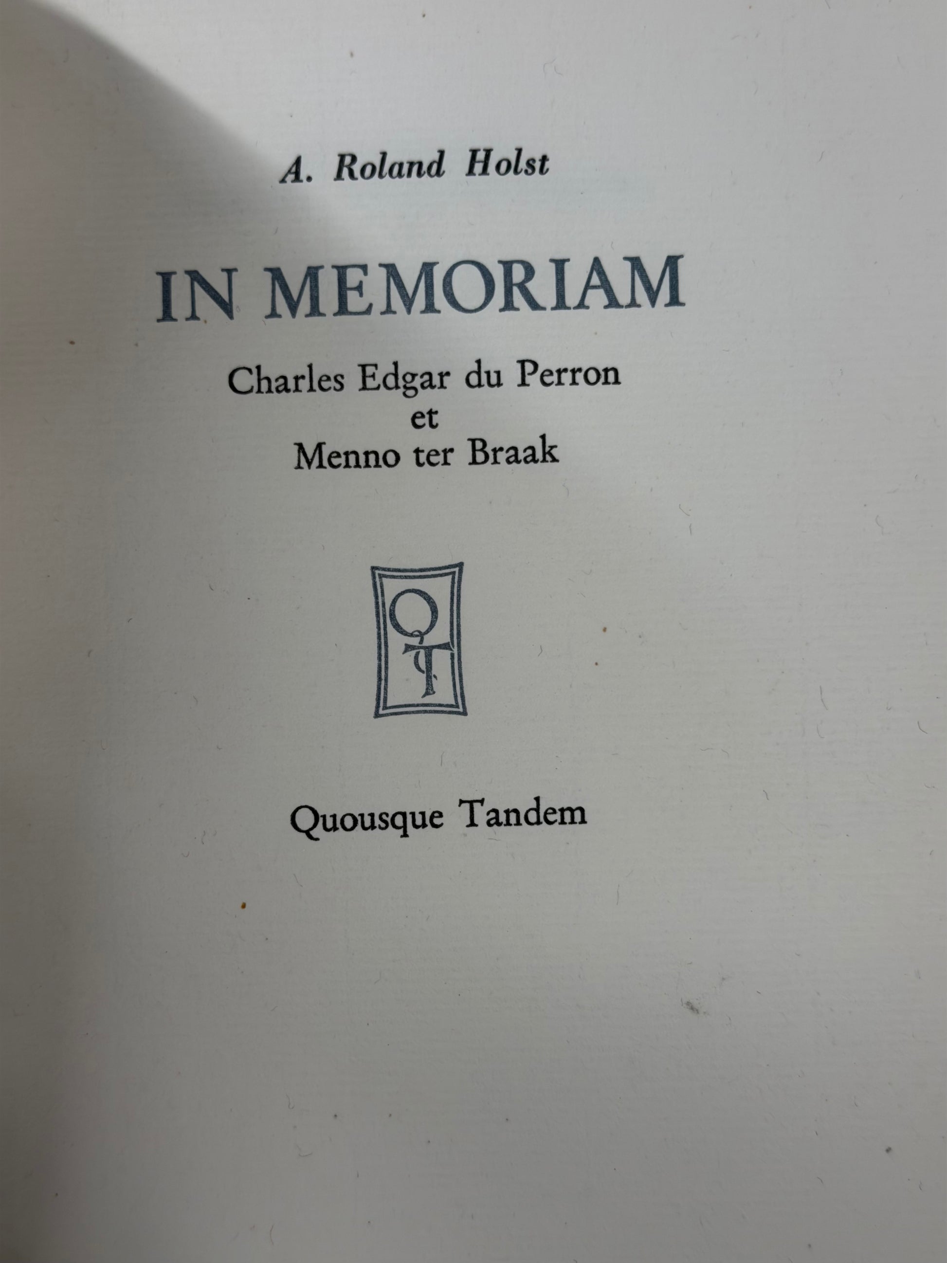 A. Roland Holst IN MEMORIAM Charles Edgar du Perron et Menno ter Braak