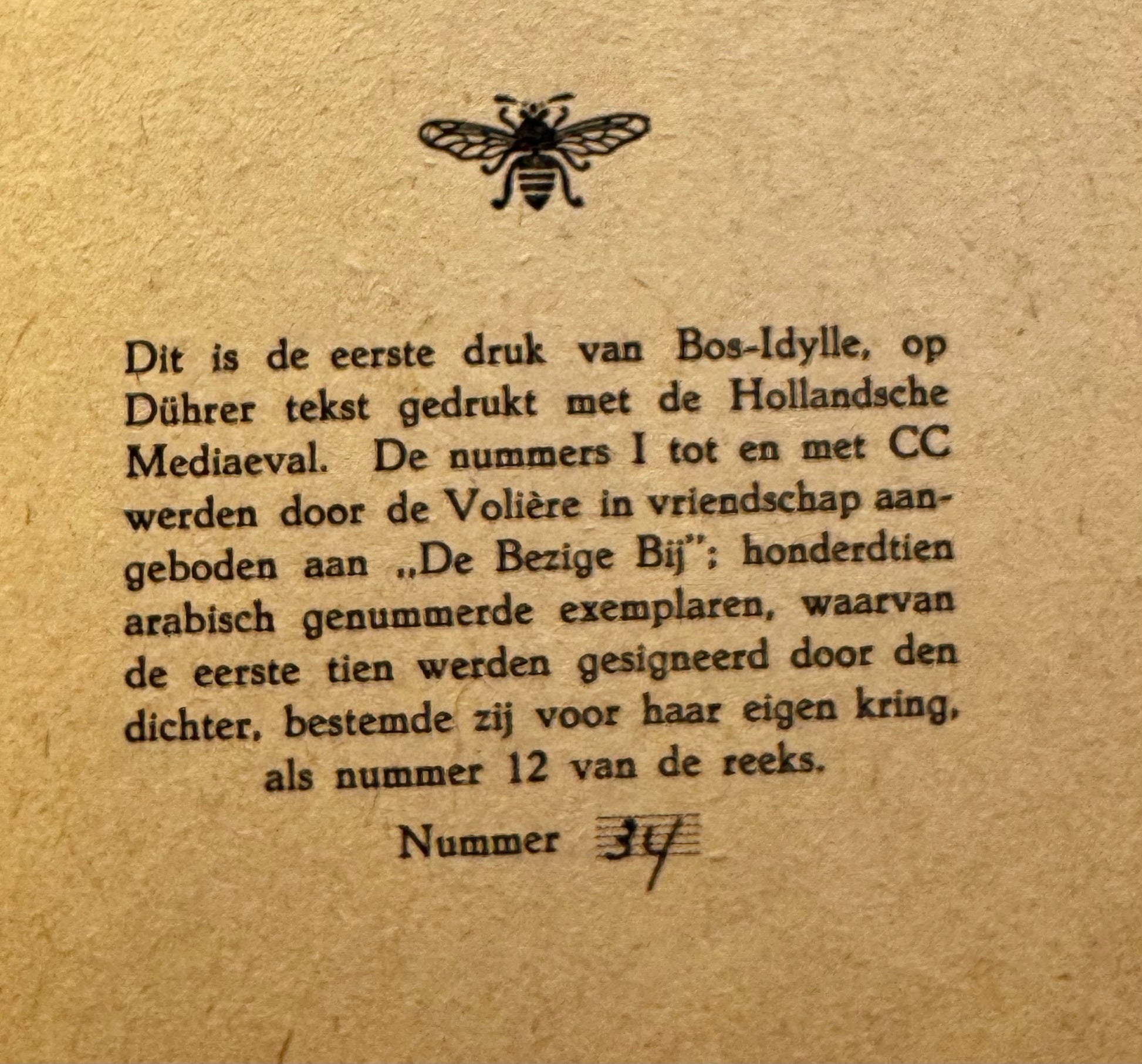nr 34 van de 310 exemplaren, waarvan 110 arabisch genummerd, bestemd voor de Bezige Bij