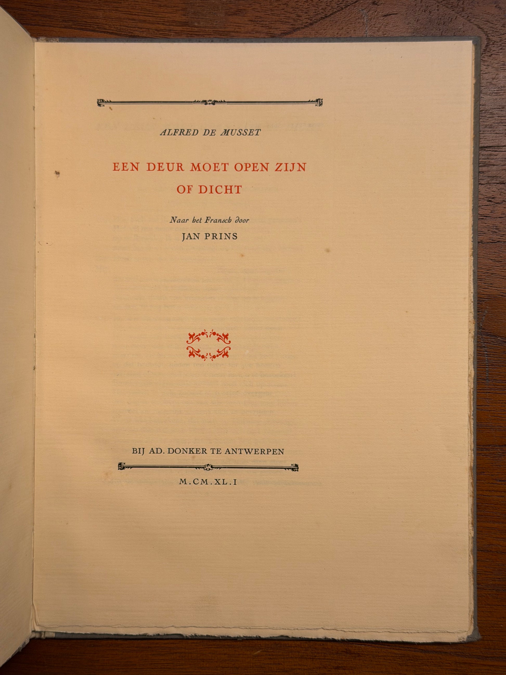 ALFRED DE MUSSET EEN DEUR MOET OPEN ZIJN OF DICHT Naar het Fransch door JAN PRINS. 1941