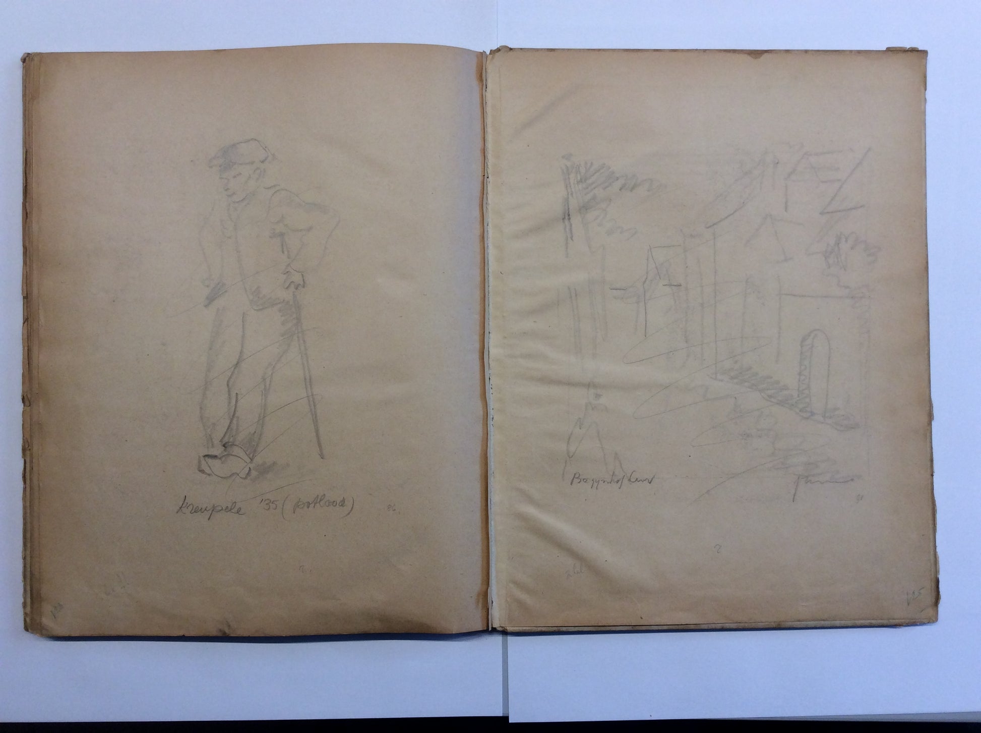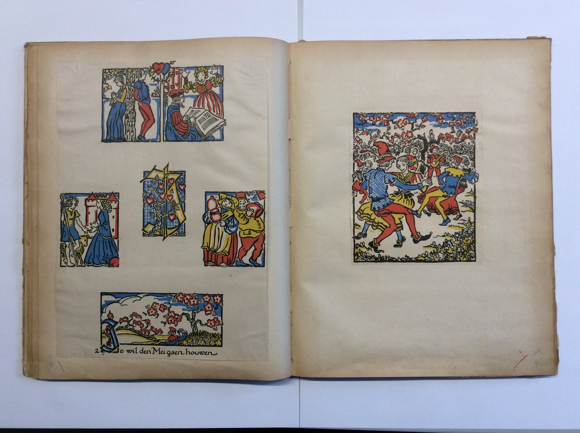 [Amsterdam, Uitgeverij De Telg, 1946] concept en ontwerp in MANUSCRIPT van nooit gerealiseerd overzichtswerk, mede door Albert Klijn vormgegeven. 122 ingeplakte illustratie-samples van exlibri, boekomslagen, grafiek etc. Geïllustreerd omslag met tekst in handschrift. Lijkt 2 bladen te missen wat onvermijdelijke beschadigingen want werkexemplaar.