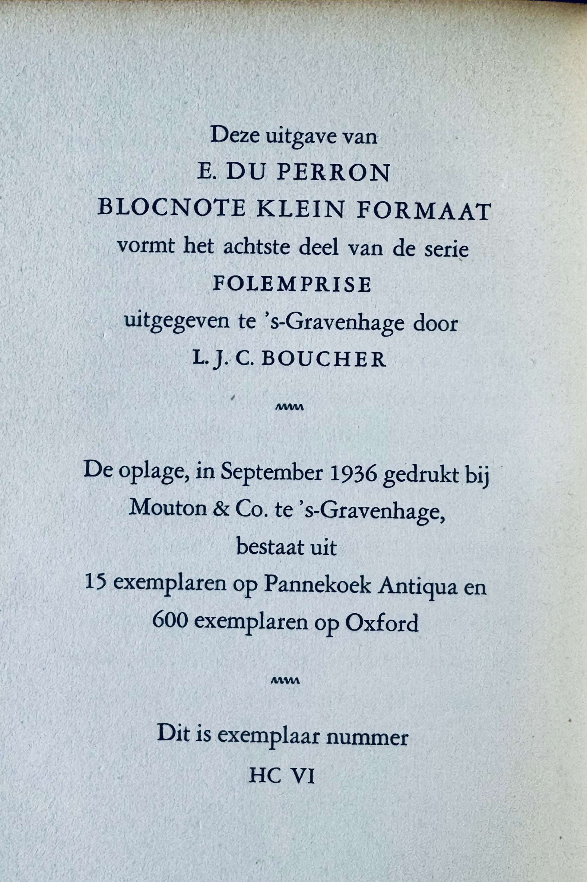 E. Du Perron. Blocnote klein formaat. ’s-Gravenhage, L.J.C. Boucher. 1936
