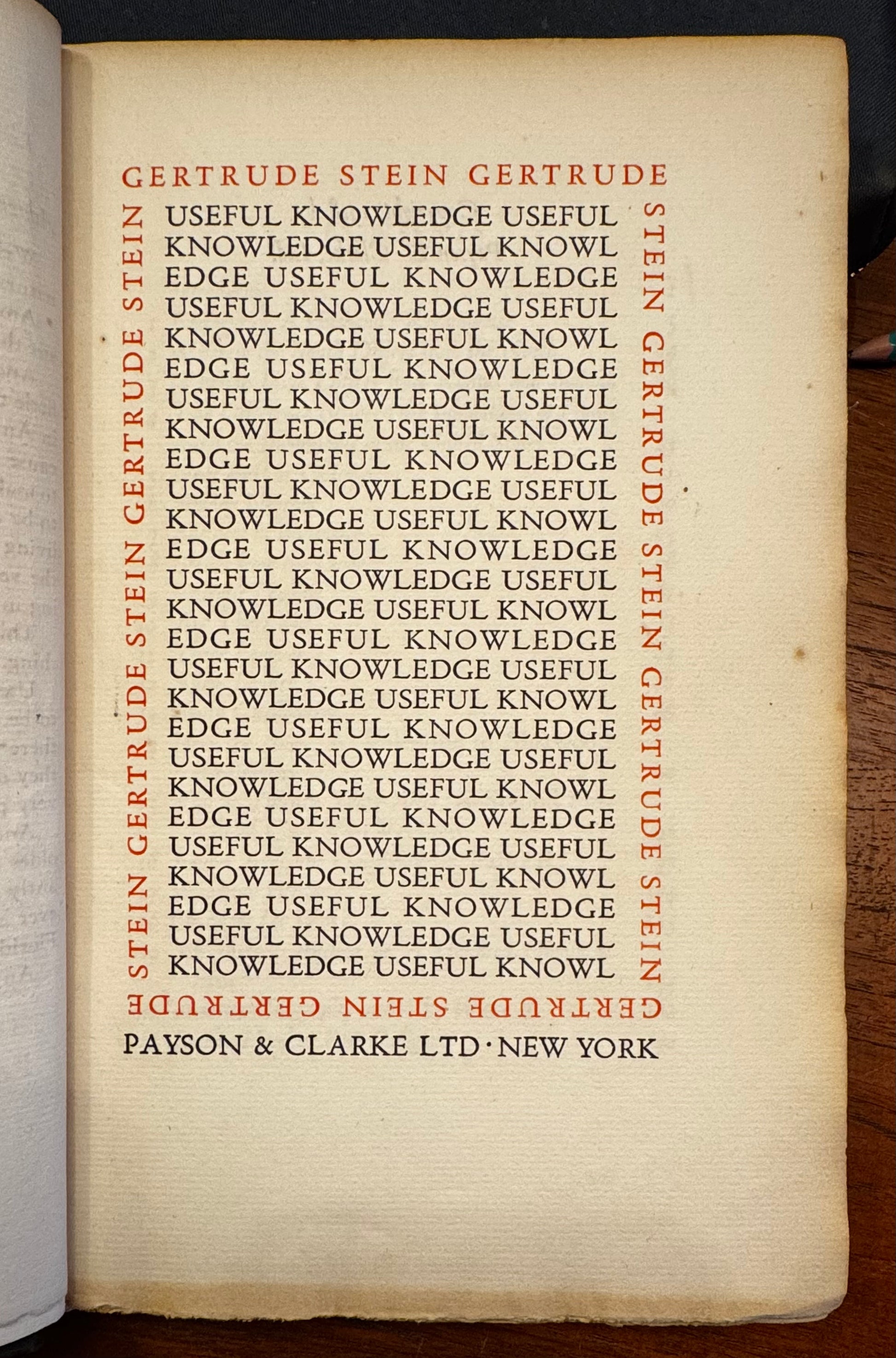 Gertrude Stein, Useful knowledge. New York, Payson and Clarke, 1928