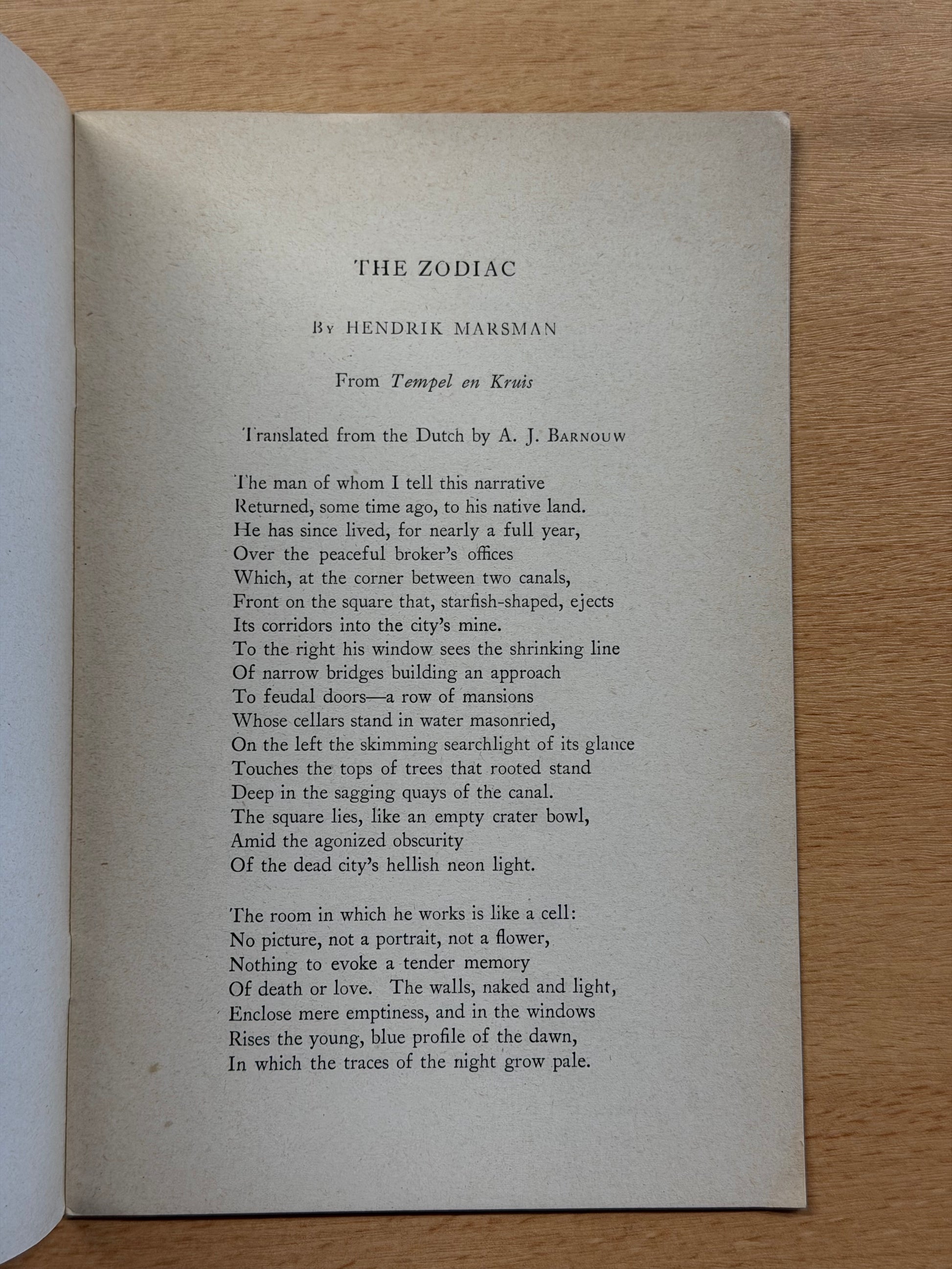 HENDRIK MARSMAN. The Zodiac. 1947