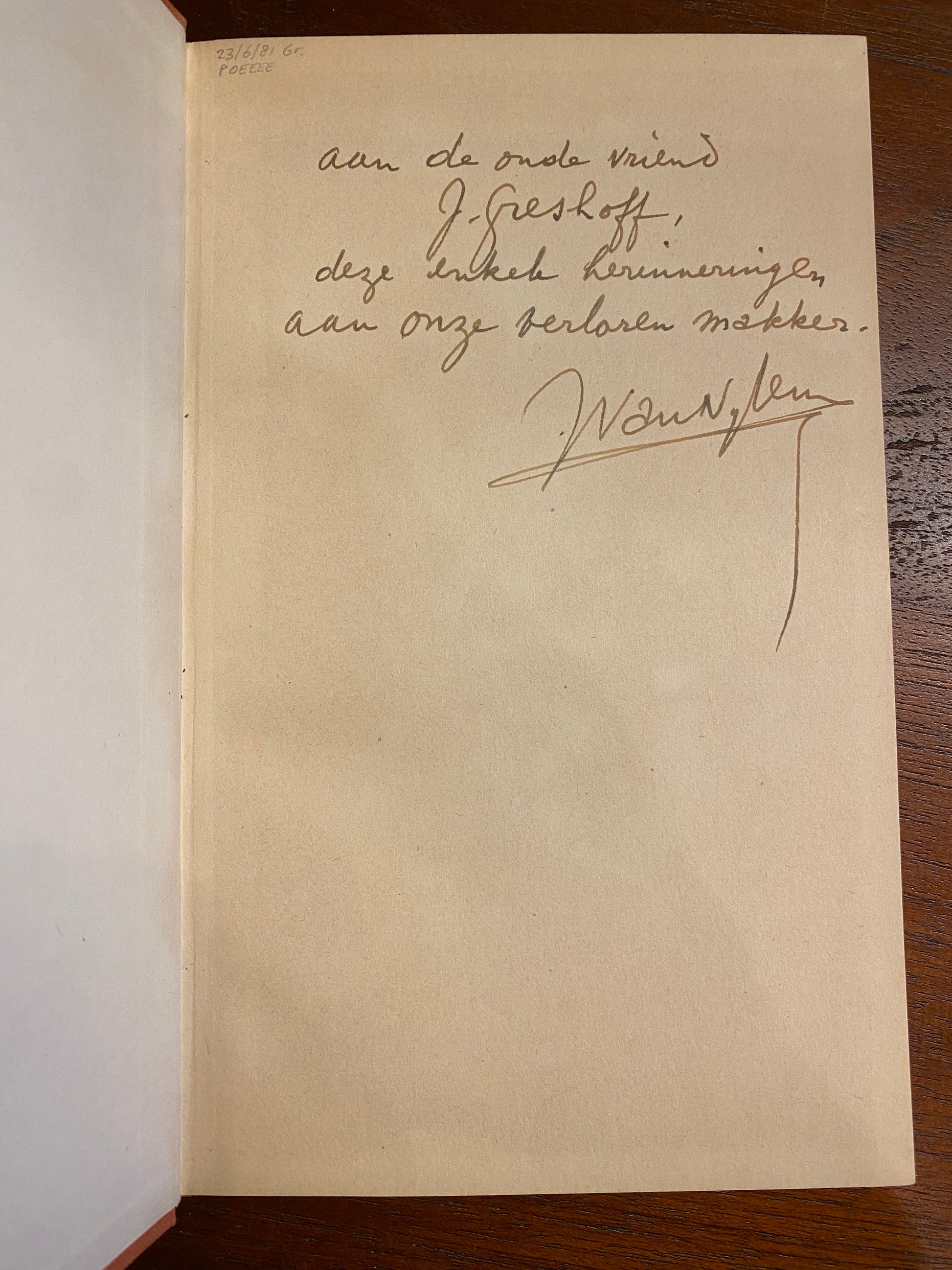 Met opdracht van Jan van Nijlen aan Greshoff