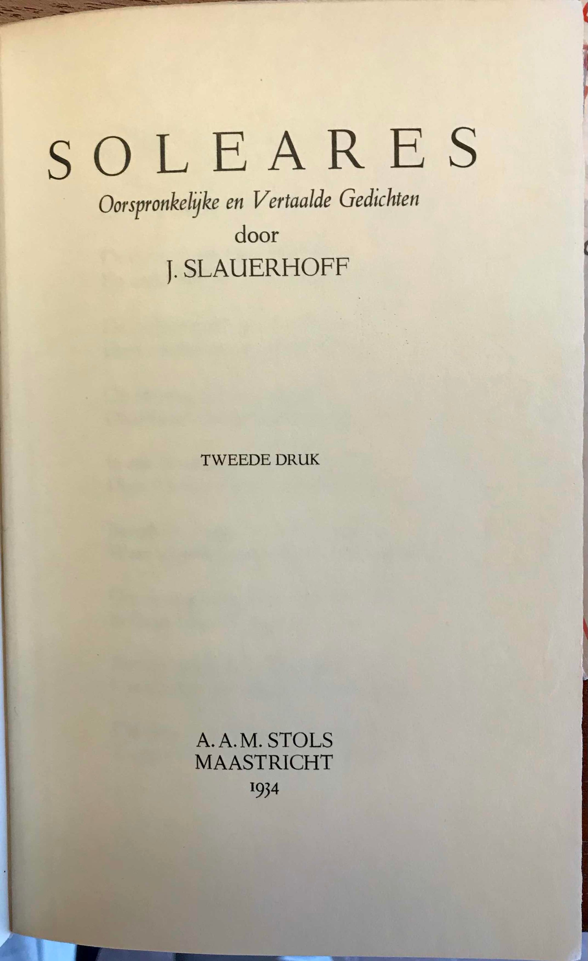 J. Slauerhoff, Soleares. Maastricht, A.A.M. Stols, 1934