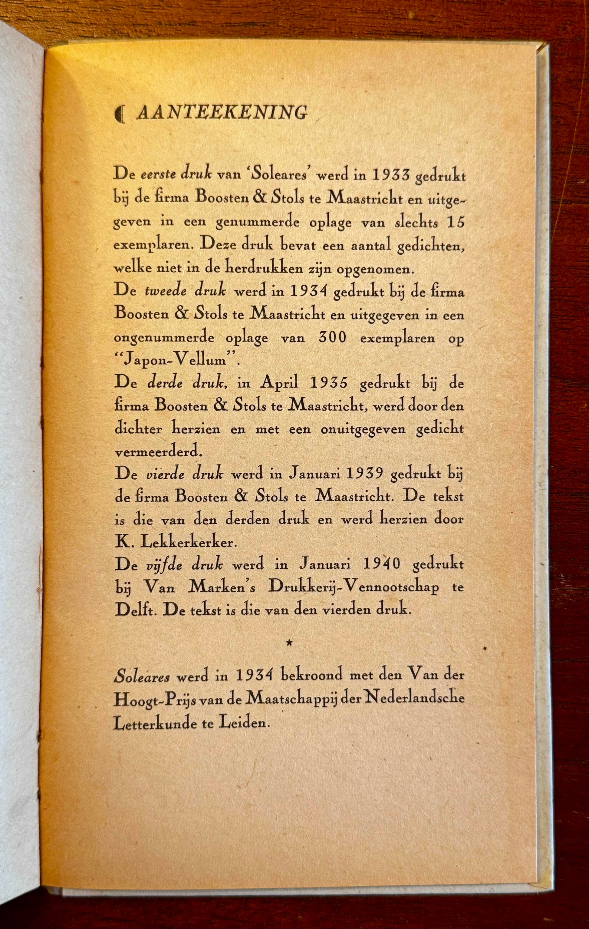 J. Slauerhoff, Soleares. Maastricht, A.A.M.Stols, 1940