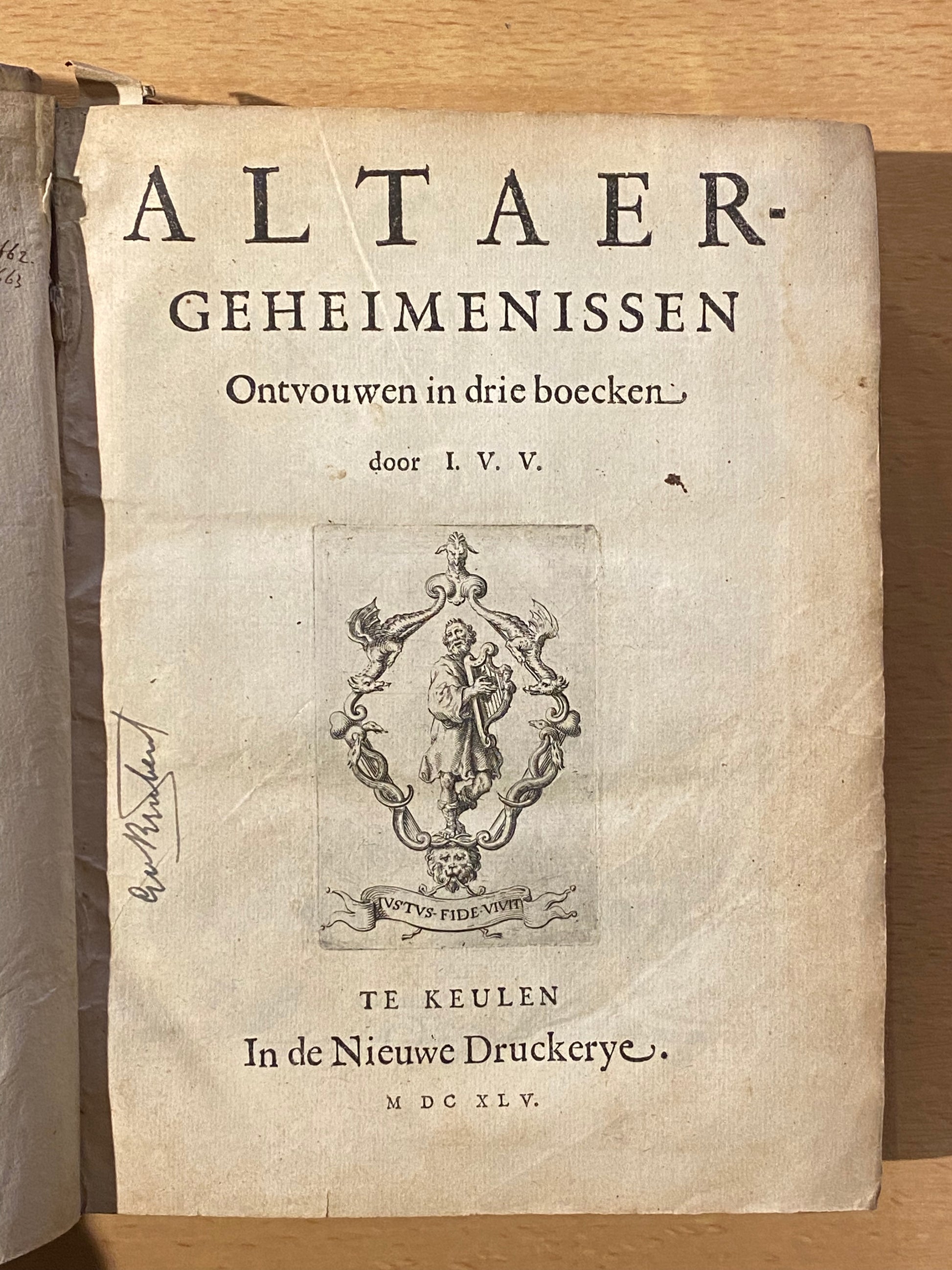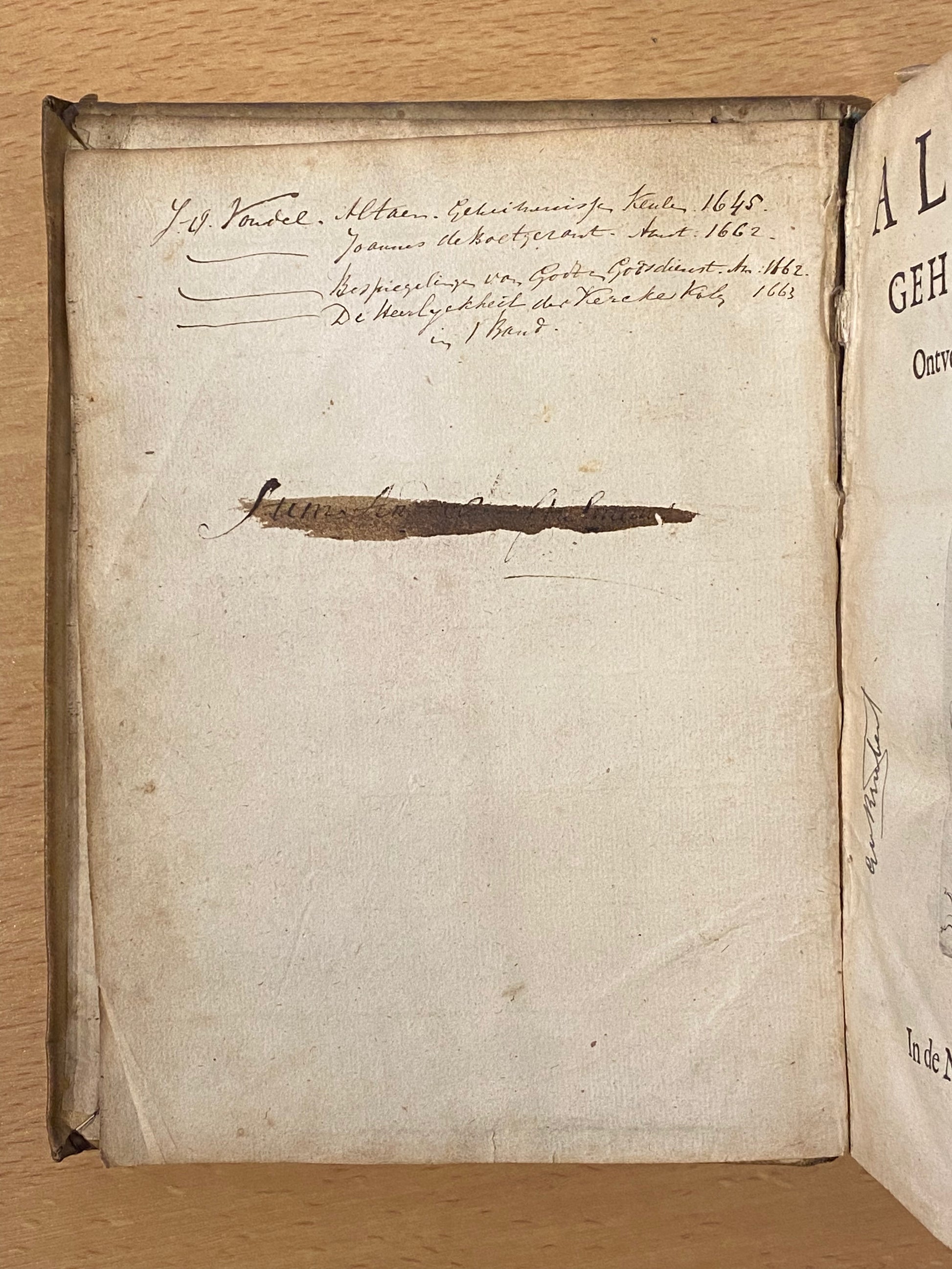 J. v. Vondel, 1. Altaergeheimenissen. Keulen, in de Nieuwe Druckerye, 1645. 2. Joannes de boetgezant. Amsterdam, voor de weduwe van Abraham de Wees, 1662. 3. Bespiegelingen van Godt en Godtsdienst. Amsterdam, by de weduwe van Abraha de Wees, 1662.