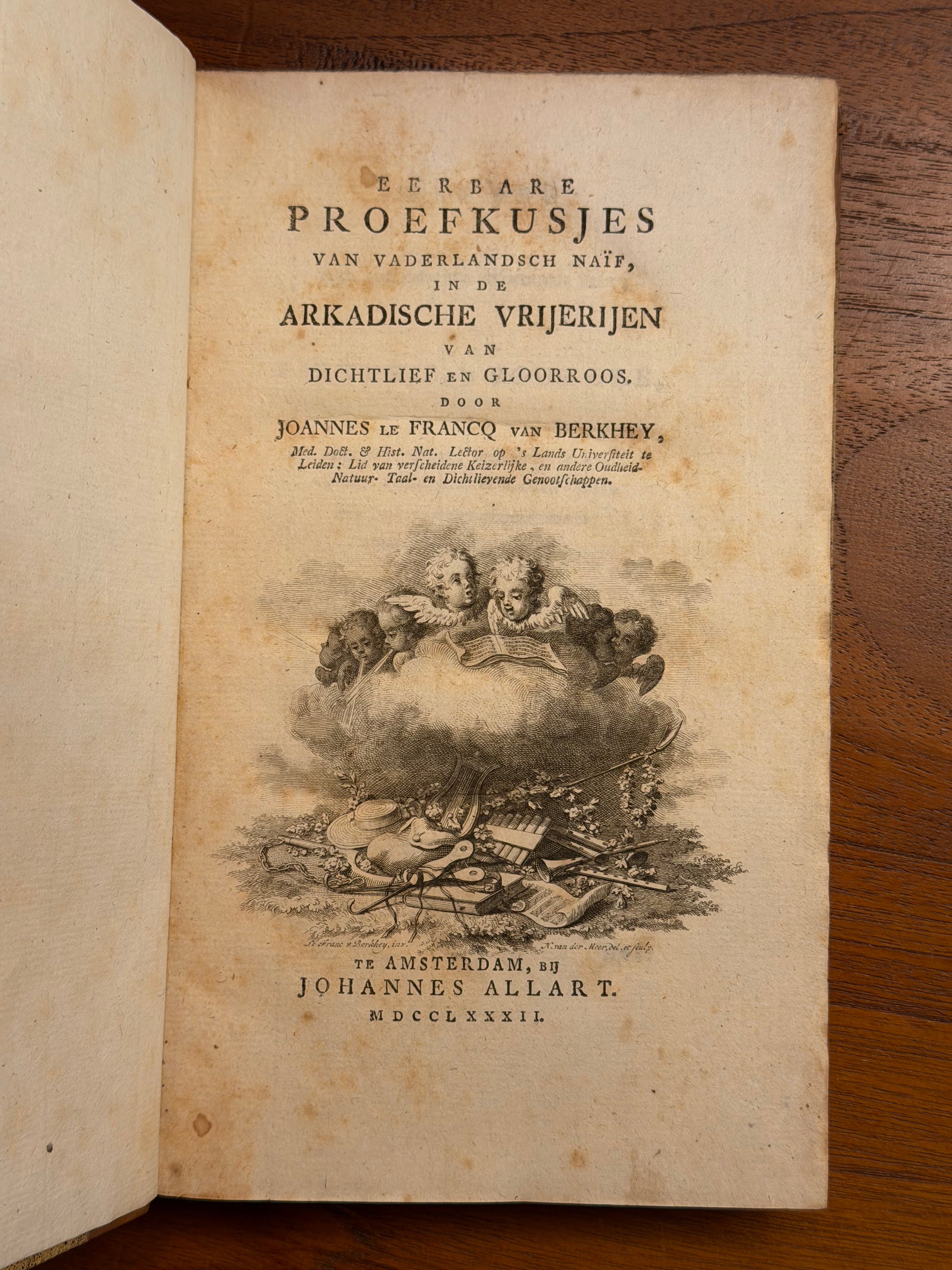 Joannes le Francq van Berkhey, Eerbare proefkusjes van vaderlandsche naïf in de arkadische vrijerijen van dichtlief en gloorroos. Te Amsterdam, Johannes Allart, 1782