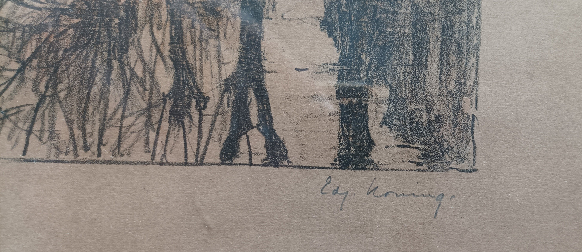 Signed and dated in pencil lower margin. 52 x 40 cm (sheet). In contemporary wooden frame behind glass. Browned as usual. gns of ageing. A fine cityscape by late Symbolist artist and illustrator of the Verkade Albums. Preferably to be collected in Amsterdam or Zaandam.