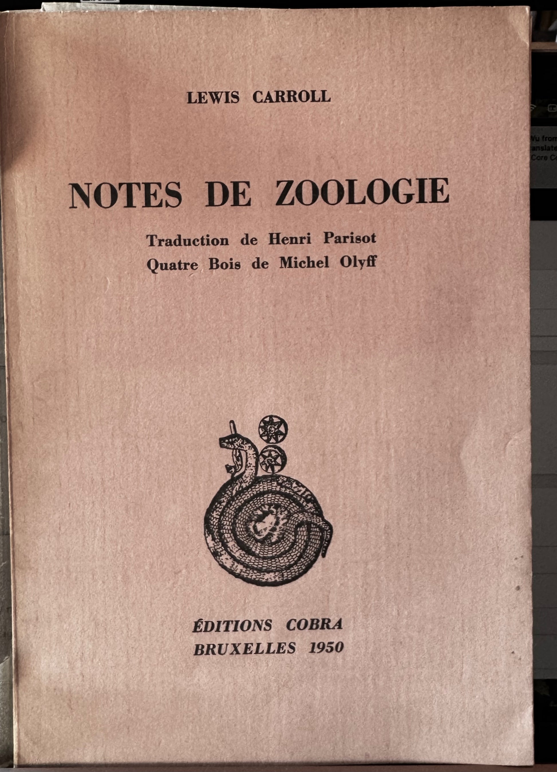 Lewis Carroll, Notes de zoologie. Traduction de Henri Parisot, Quatre bois de Michel Olyff. Bruxelles 1950