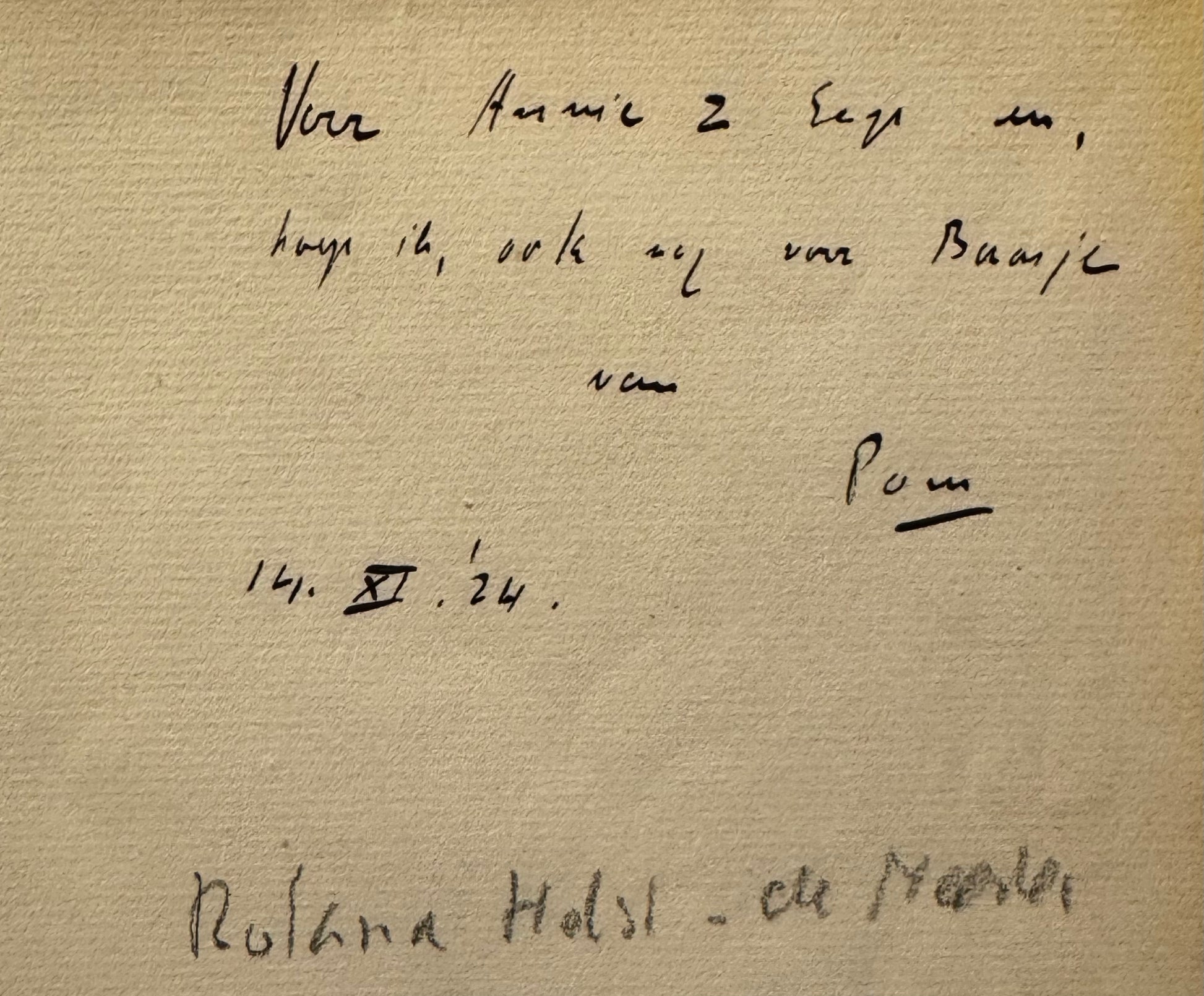 Opgedragen aan Roland Holst-De Meester. Mooi exemplaar, hier in folie gefotografeerd.