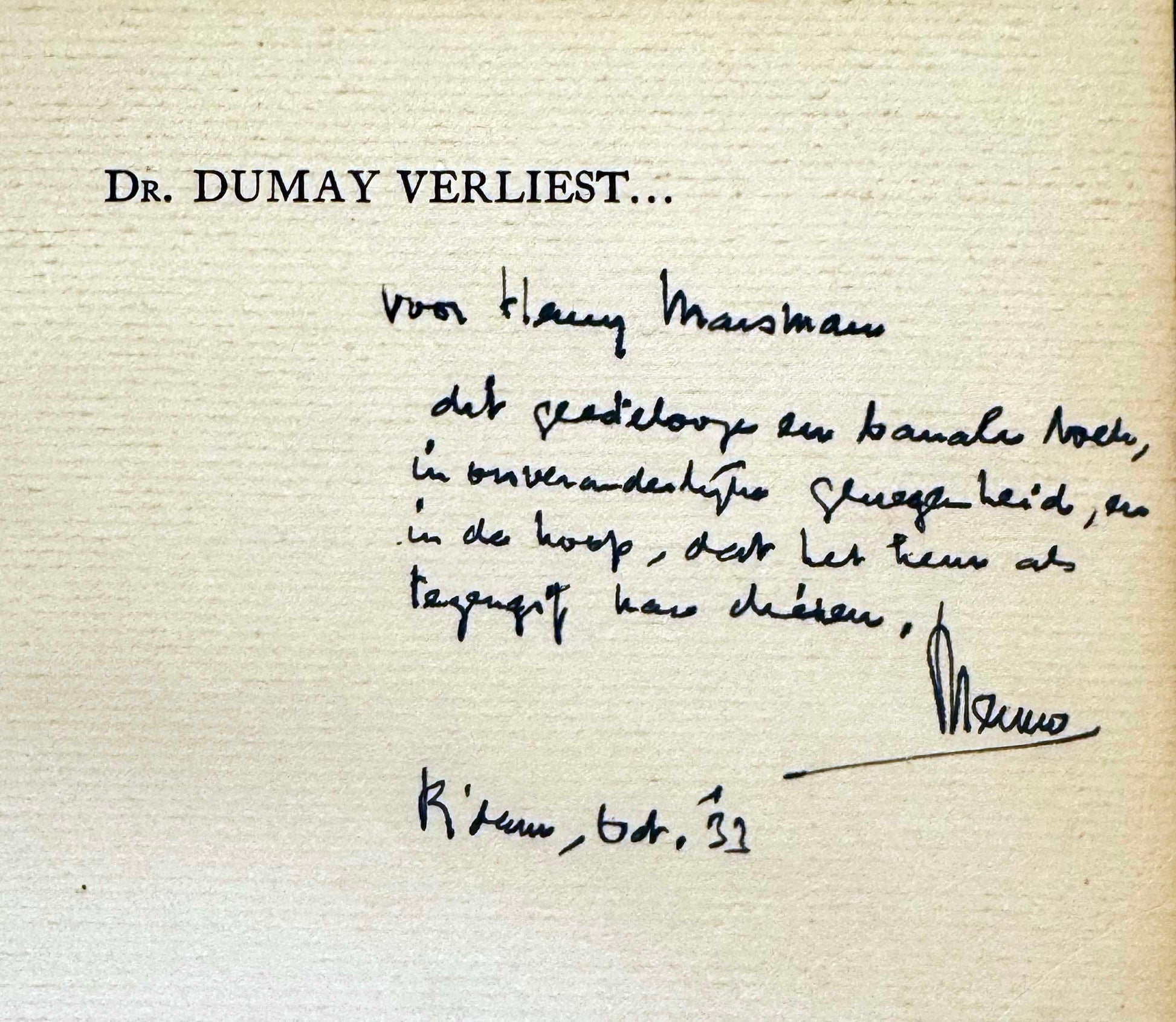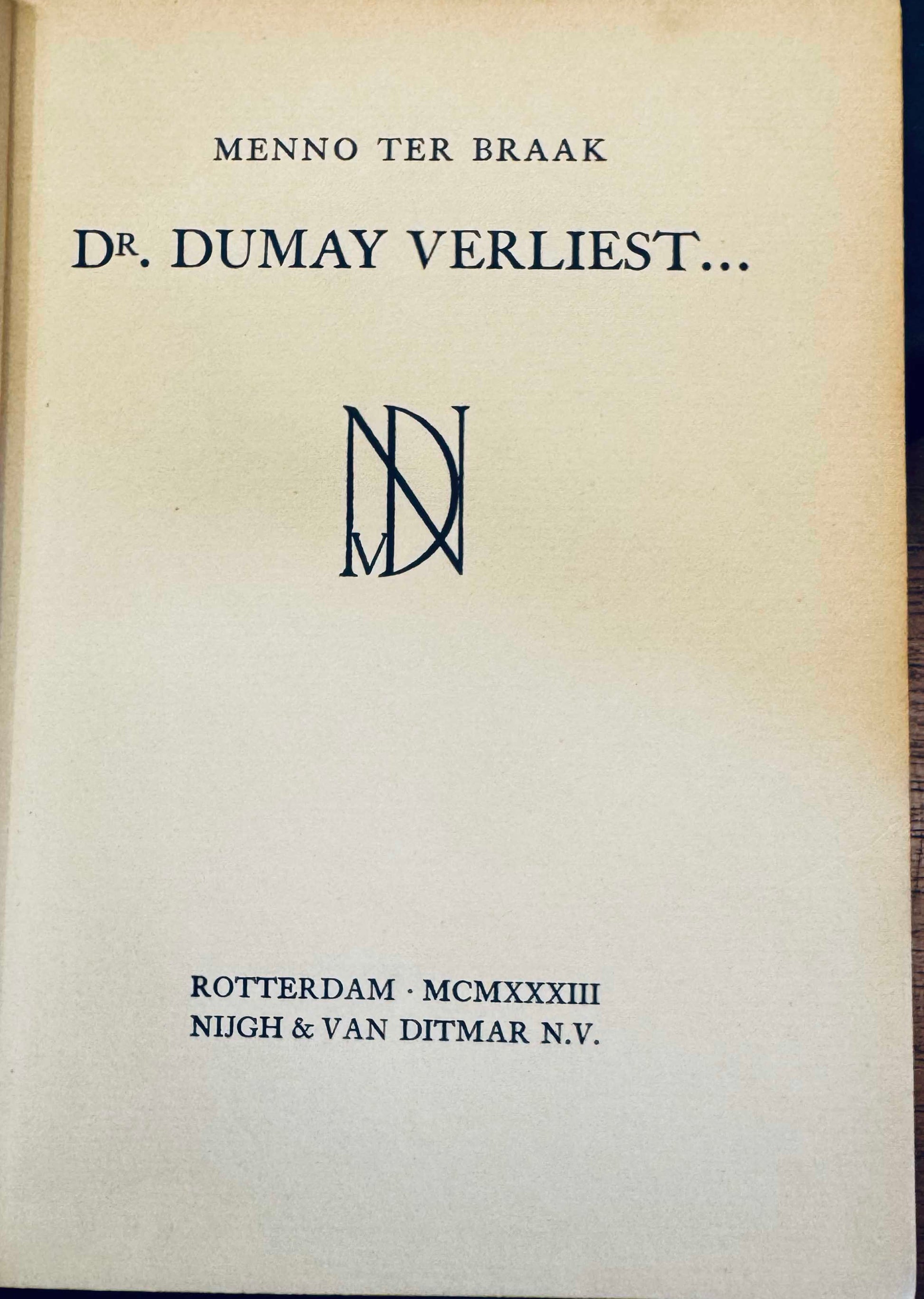 Menno ter Braak, Dr Dumay verliest ... Rotterdam, Nijgh & Van Ditmar, 1933