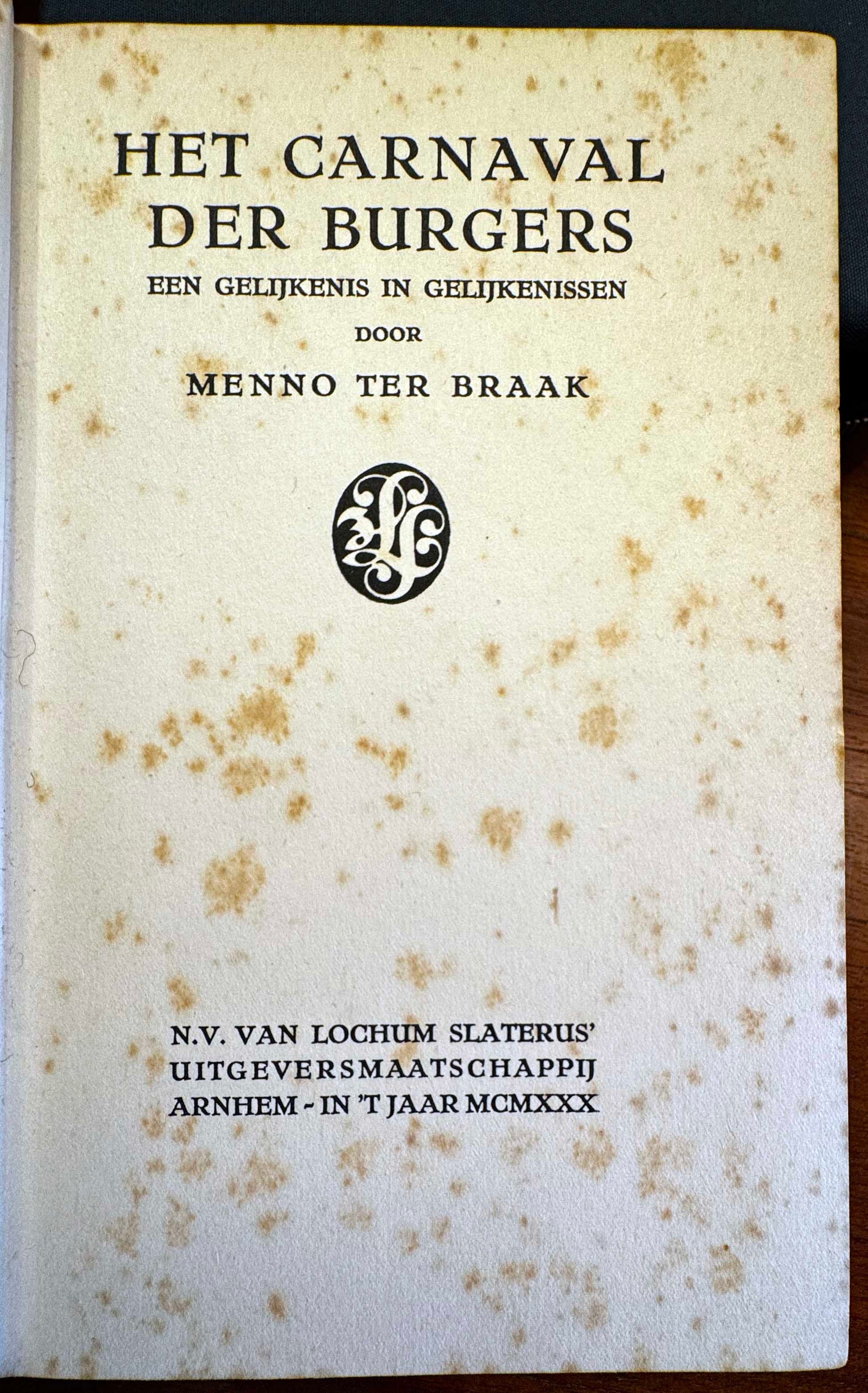 Menno ter Braak, Het carnaval der burgers. Een gelijkenis in gelijkenissen. Arnhem, Van Lochum Slaterus, 1930