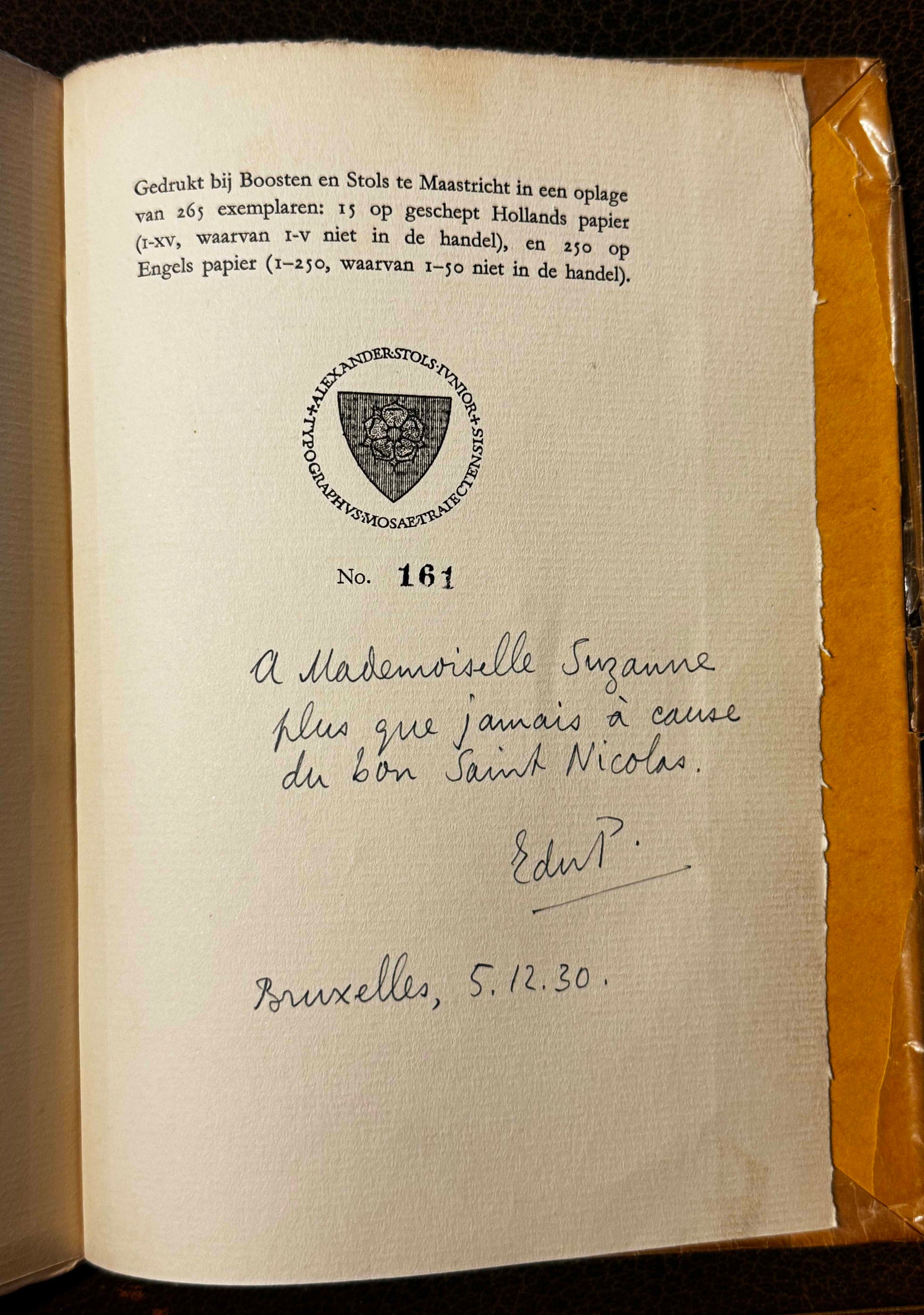 No 161: ‘A mademoiselle Suzanne plus que jamais … E du P. Bruxelles, 5-12-30.’