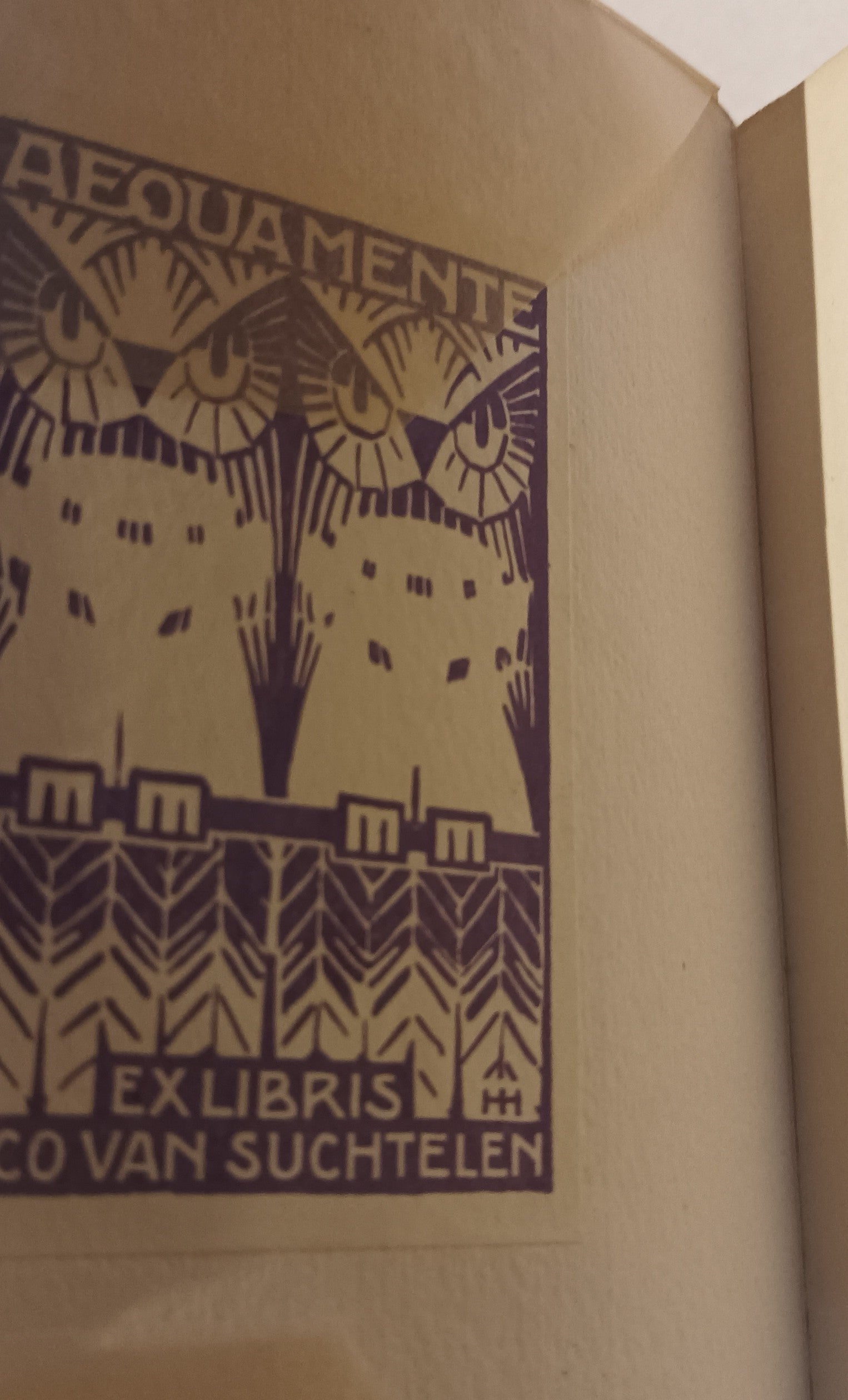 Bandversiering W.F. Gouwe. Bussum, Van Dishoeck, 1913. 1ste druk. Oorspronkelijk gedecoreerd papier omslag. Met OPDRACHT van de dichter dd. juni 1913 aan Nico van Suchtelen in inkt op Franse titel. Met Van Suchtelens exlibris, ontwerp H[erman] H[ana]. Heel goed exemplaar.