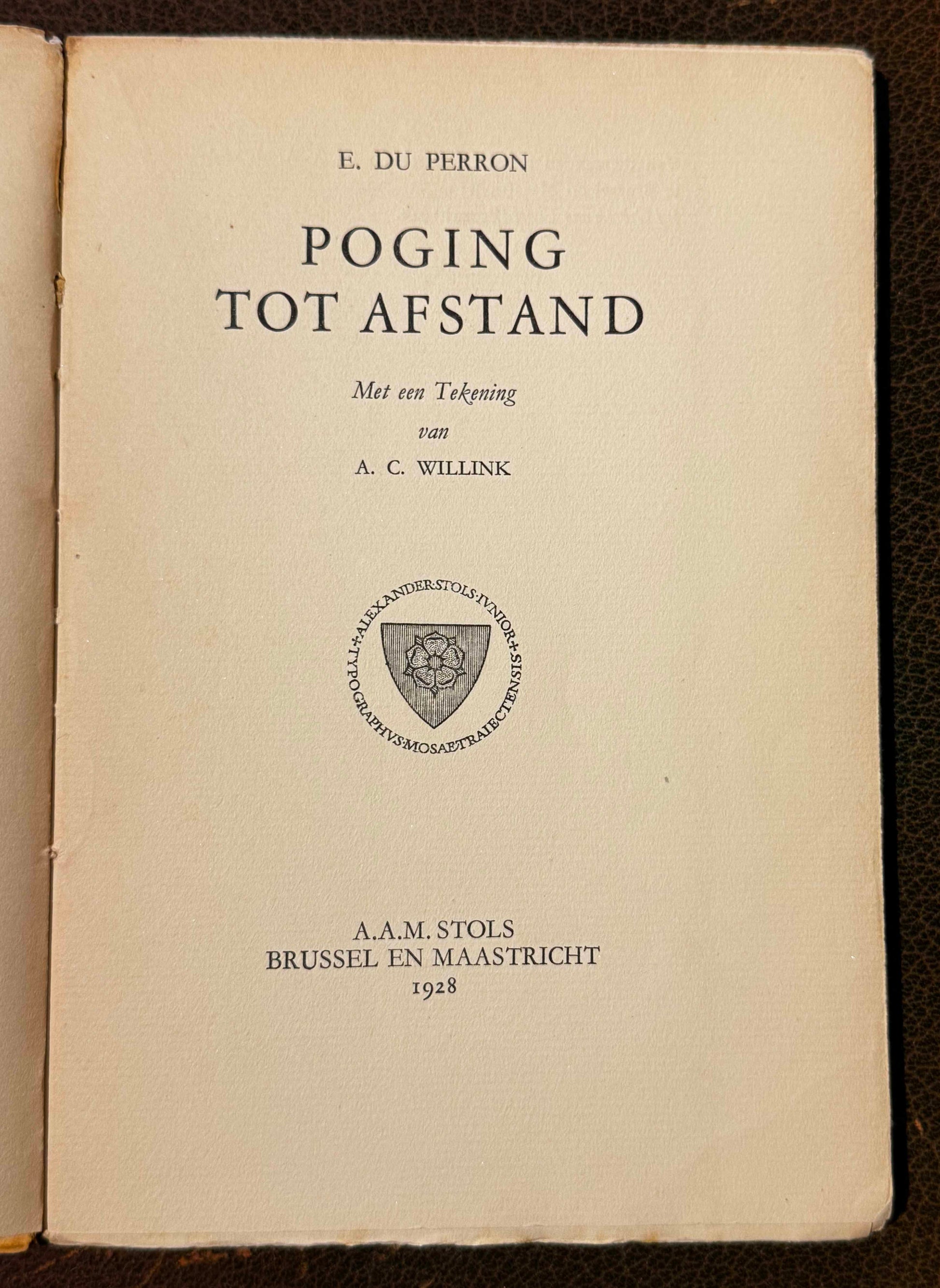 E. du Perron, Poging tot afstand. Met een tekening van A.C. Willink. Bussum, bij W.N. Dinger, Parklaan, 27, 1927